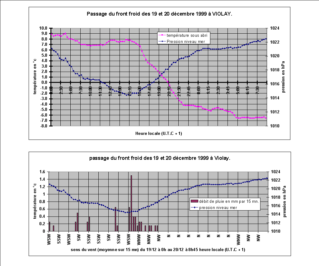 Passage du front froid à VIOLAY (830 m) les 19 et 20 Décembre 1999