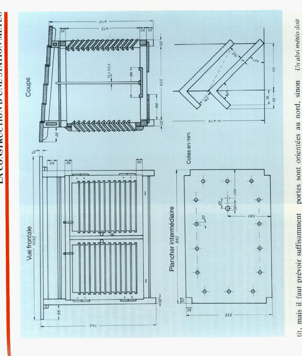 L'idée du mur est bonne, mais il faut que celui-ci soit continuellement à la même température que l'air. La solution est donc de fabriquer un mur léger qui comme l'air ne capte pas trop le rayonnement solaire (et terrestre) et qui laisse le vent librement circuler. D'où un abri fermé de tout coté, en bois (ou plastique), peint en blanc et muni de persiennes.