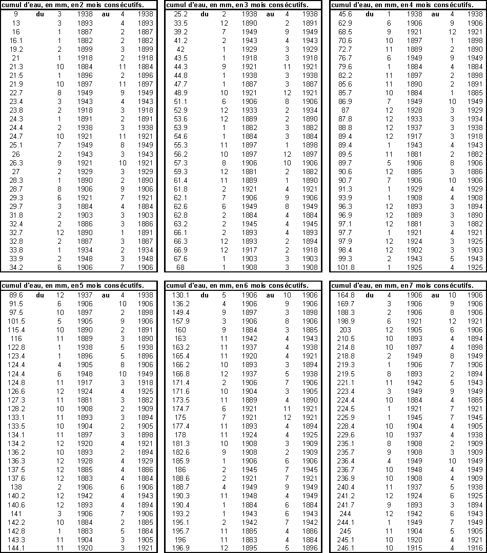 Les 25 sécheresses les plus marquées (période 1881-1950).