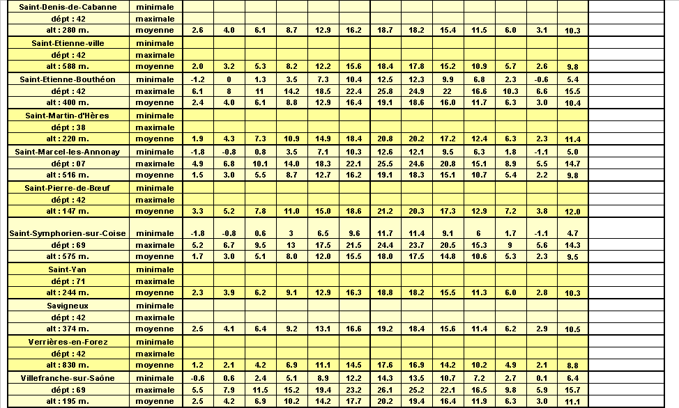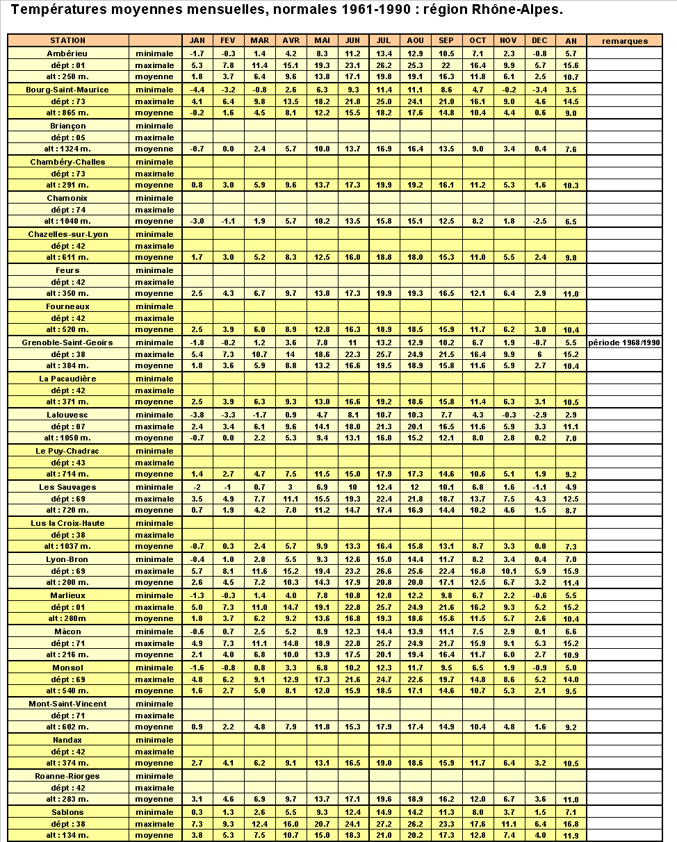 Retour au sommaire températures normales